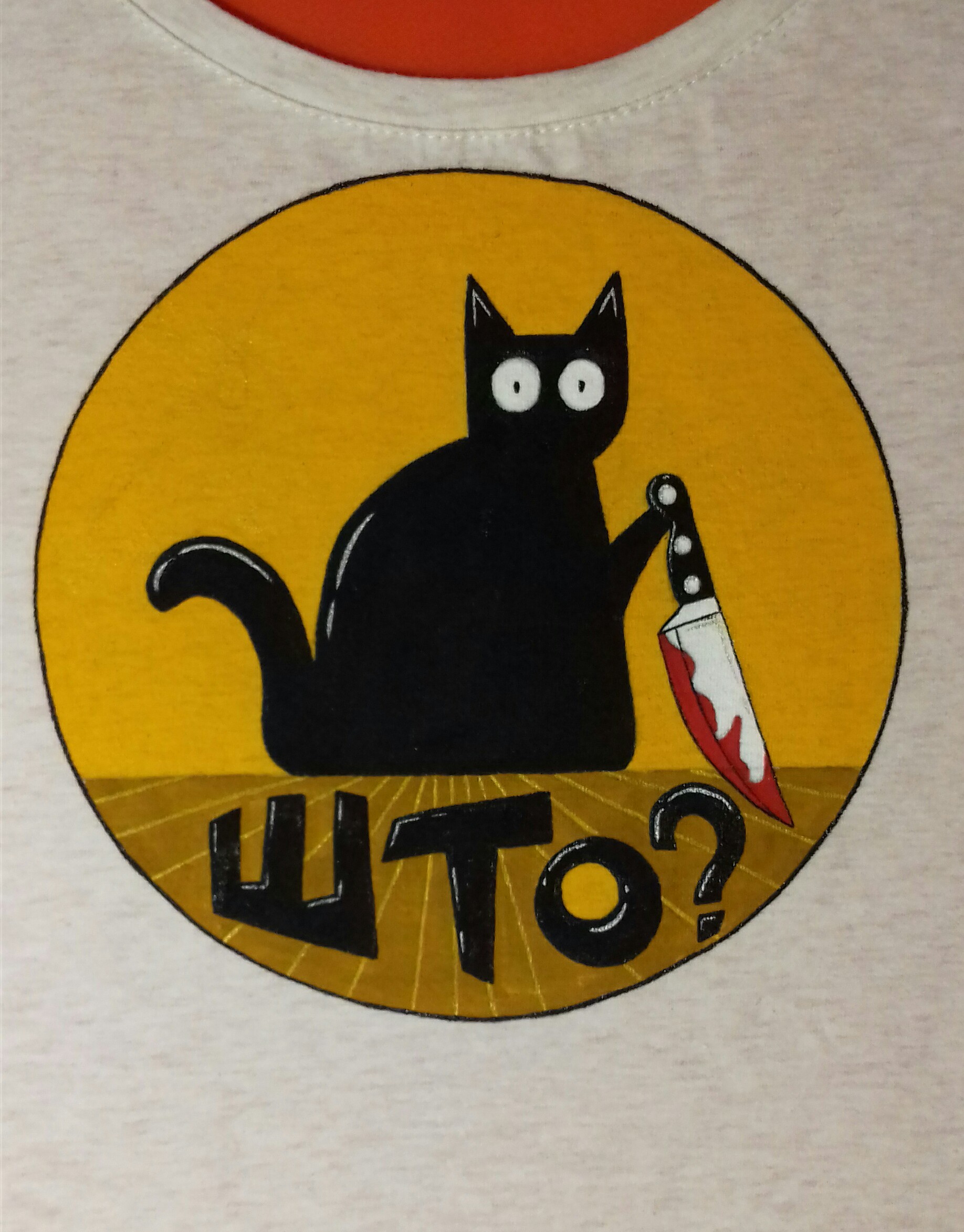Narisovannyj Kot V Perchatkah I Nozhom V Lape Na Fone Kapel Krovi