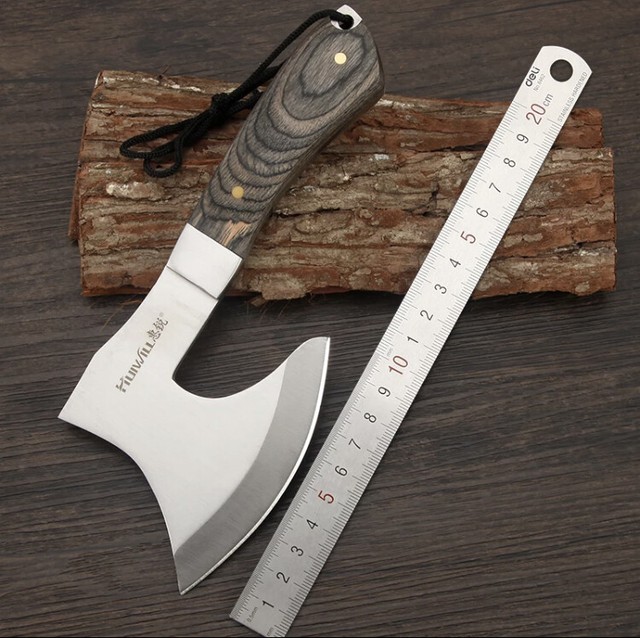 We test this combo. Its a sturdy simple axe with a titanium coated 3cr13. Made with a longer handle than the original gator the advantage is a greater striking force with the stainless steel.