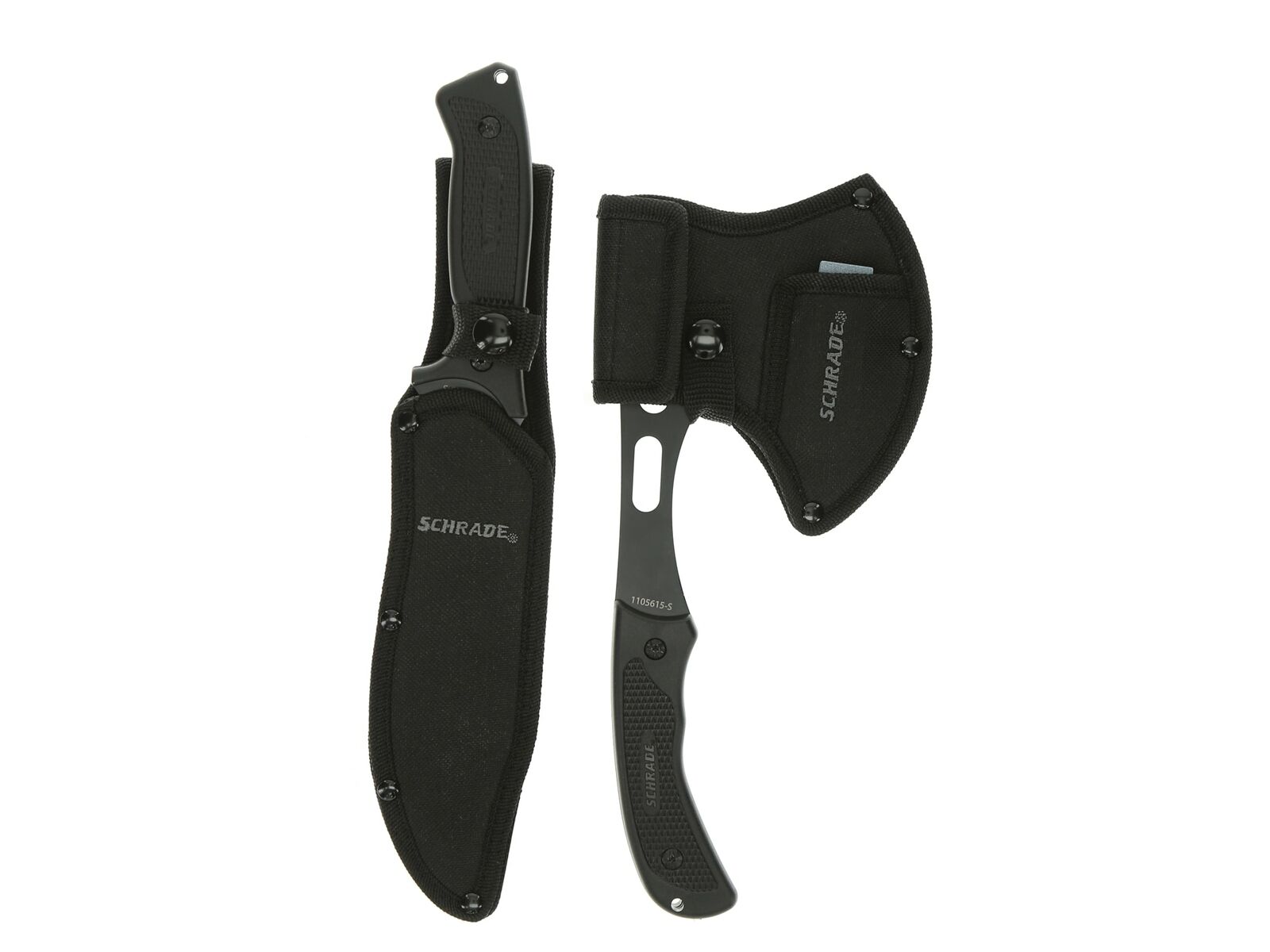 Schrade Axe Fixed Blade Combo Rubber Handle Sheath Sharpening