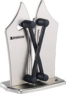 Have a drawer full of knives but nothing sharp. Dont use fixed edge sharpeners that grind down and destroy your knives. Simply place the knife where the two action arms meet and pull it until it sharpens.